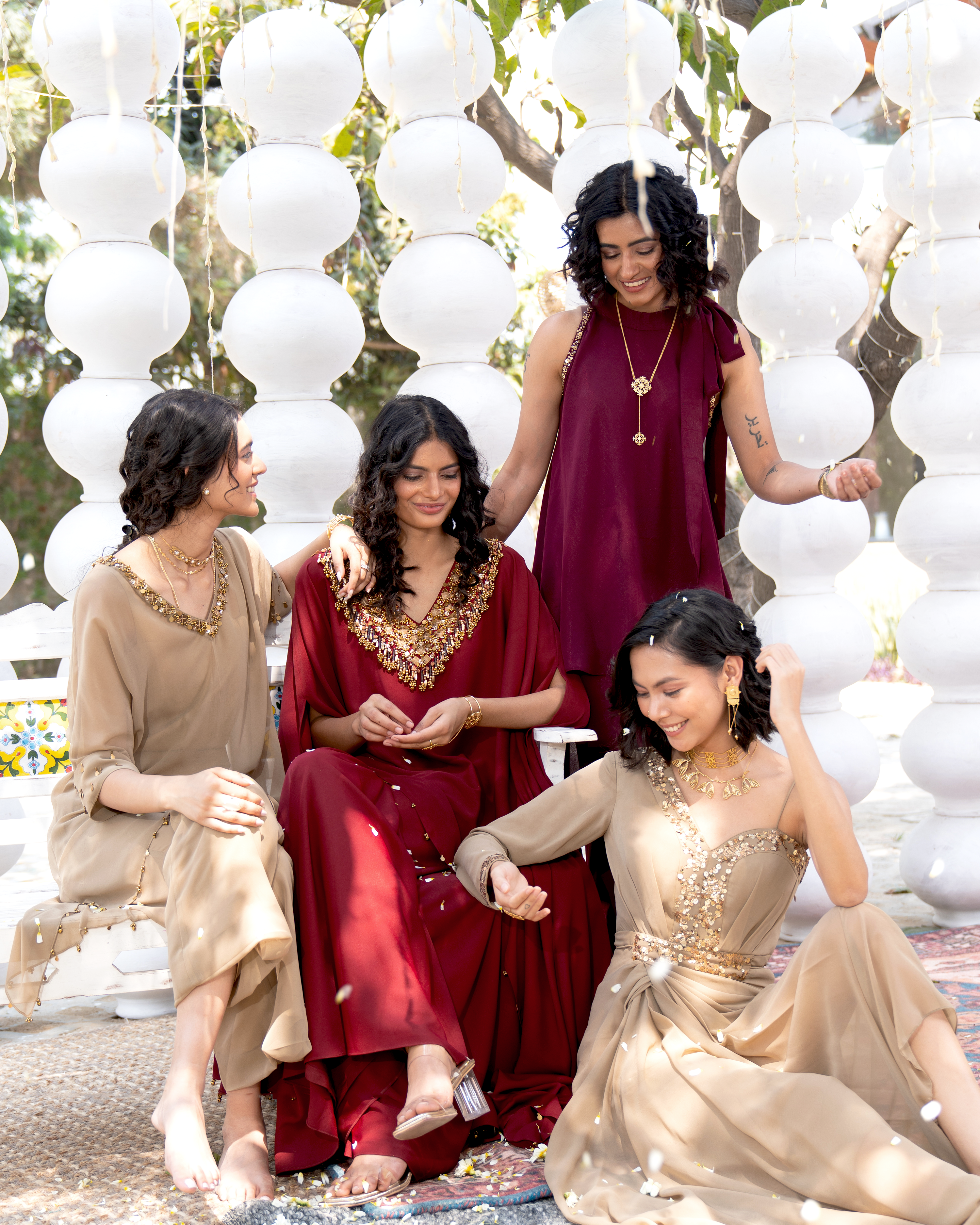 Renowned for their fusion of traditional Indian craftsmanship with contemporary silhouettes, Savleen Kohli and Rachna Chadha's vision is to showcase the intricacies of Indian arts through luxurious fabrics and meticulous detailing, redefining global fashion with a touch of Indian heritage.